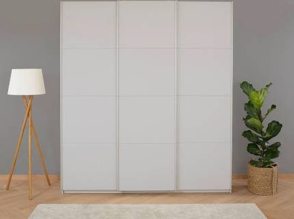 Dulap cu usi glisante KULMBACH 361x210x62cm alb alpin/ sticla champagne-oglinda configurabil