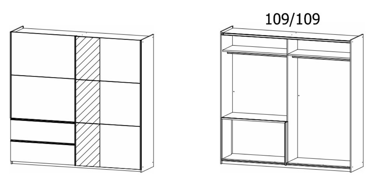 - 218 / 210 / 59 cm (2 usi + 2 sertare) cu oglinda