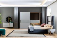 Setul contine: un dulap, un pat 180x200cm, o comoda + oglinda, 2 noptiere