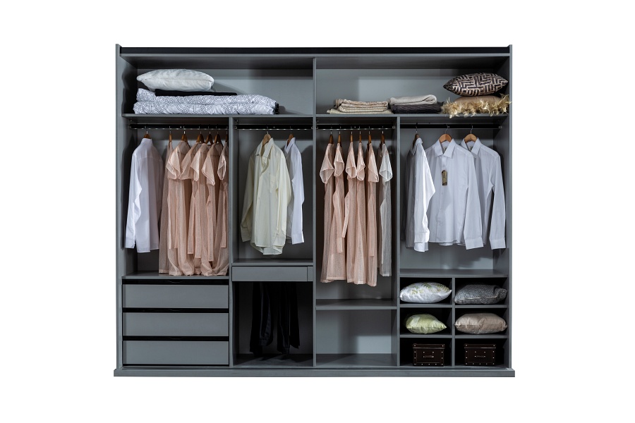 Rafturile din inetieriorul dulapului sunt demontabile si pot fi reglate pe inaltime.