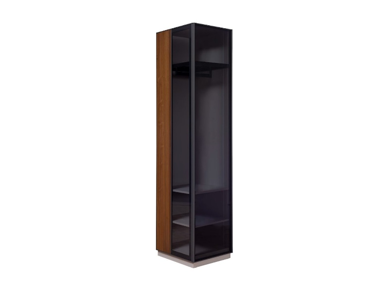 Dulapul are sticla neagra iar in interior are lumini led, toate usile sunt cu sistem de inchidere soft-close.