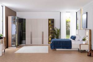 Pretul afisat NU include noptierele, salteaua, tabliile noptierelor, comoda cu oglinda, dulapul si alte accesoriile din imaginile de prezentare.