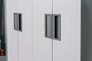 Sticla neagra pe frontul a 2 usi laterale de la dulap.