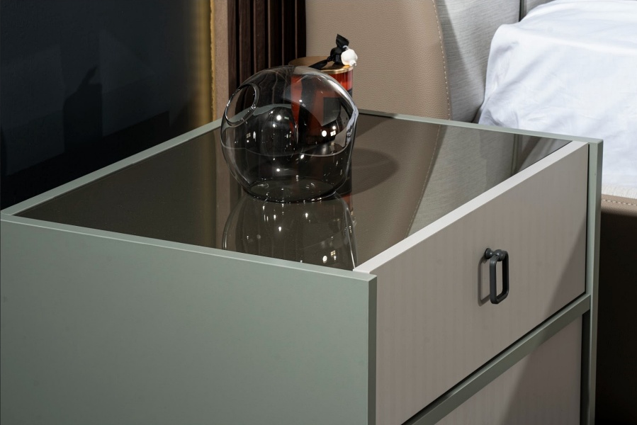 Culoare: tapiterie gri silver + ecopiele verde sage + sticla neagra + gri