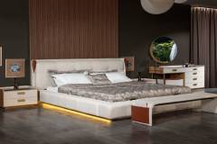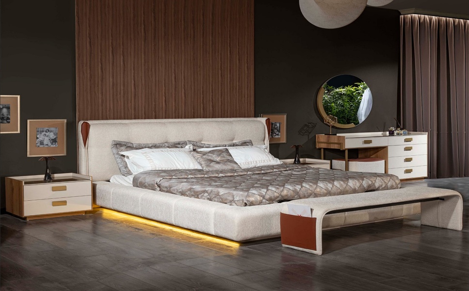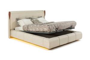 Patul este prevazut cu spatiu pentru depozitare tip lada si cu somiera (sistem de rabatare cu pistoane pe gaz)