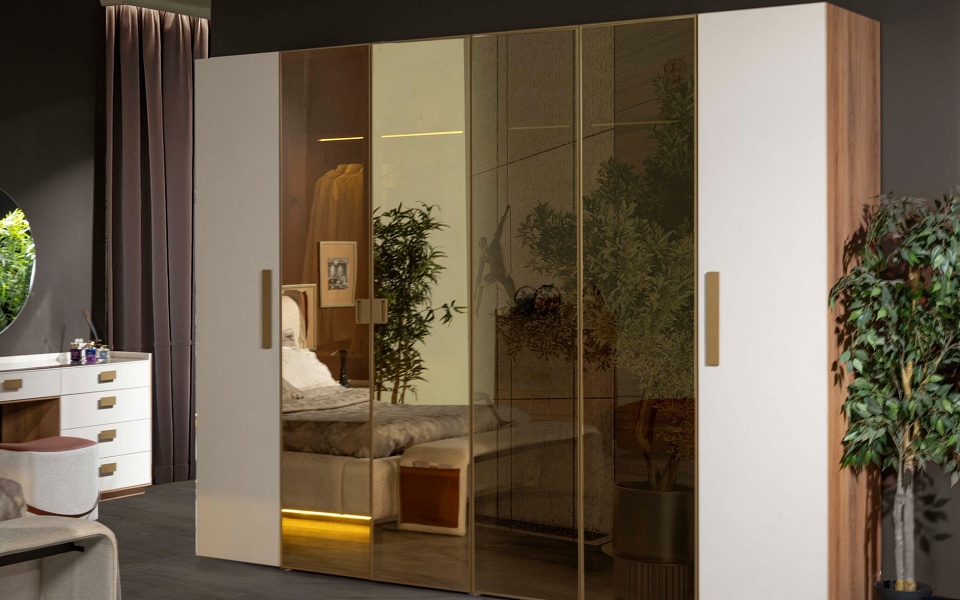 Sticla neagra pe frontul a 4 usi de la dulap.