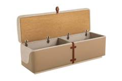Banca are spatiu pentru depozitare imparit in 2 compartimente.