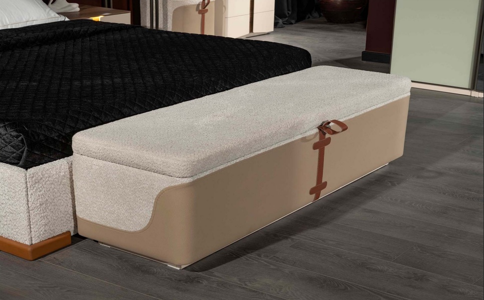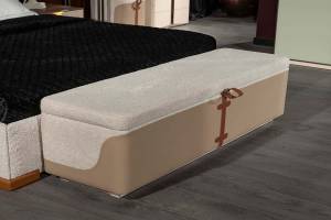 Patul este prevazut cu spatiu pentru depozitare tip lada si cu somiera (sistem de rabatare cu pistoane pe gaz)