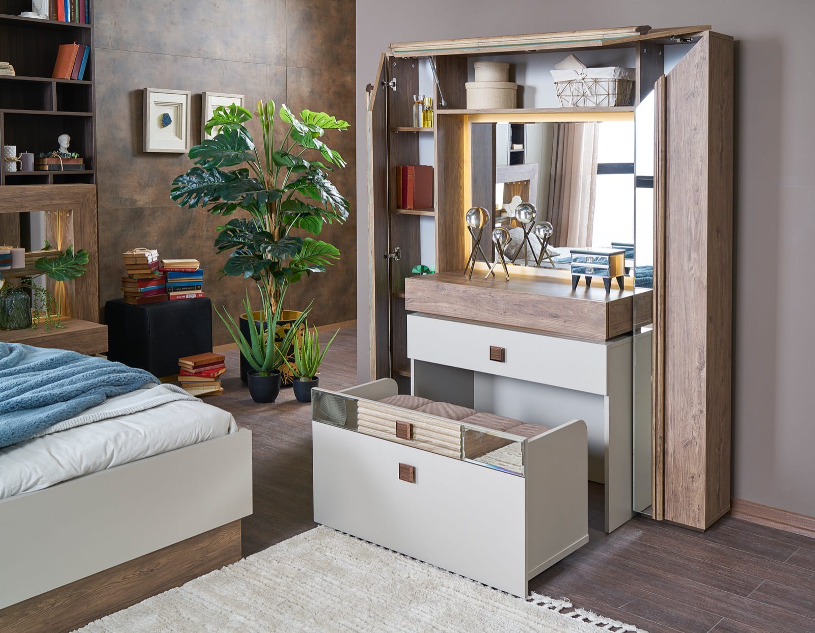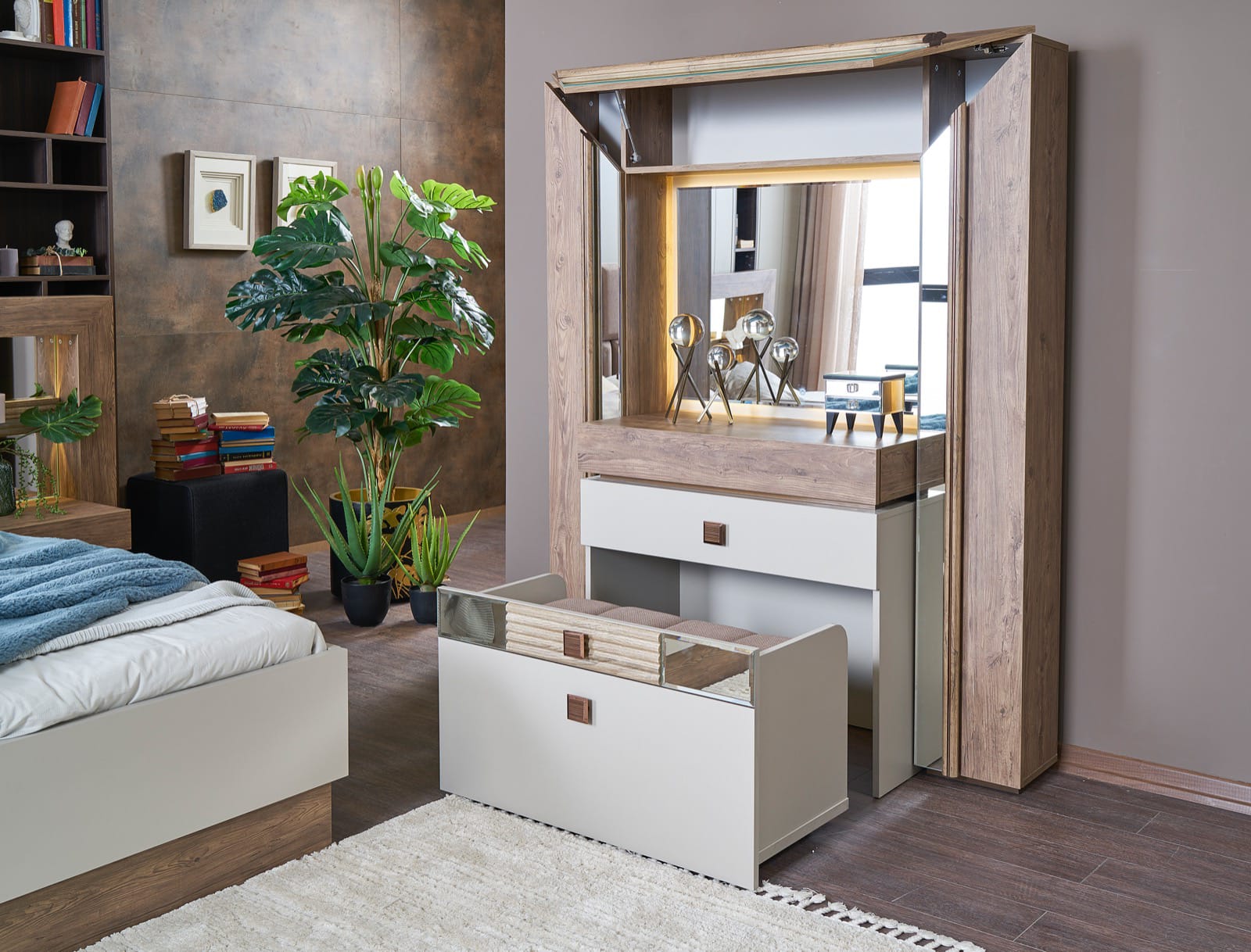 Materiale folosite la productie: MDF, PAL, oglinda, metal, material textil, sticla