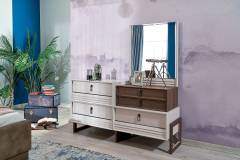 Nuante: crem + nuanta de lemn cu aplicatii crom si oglinda bronz