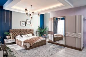 Setul contine : un dulap, un pat 160x200cm, o comoda + oglinda, 2 noptiere