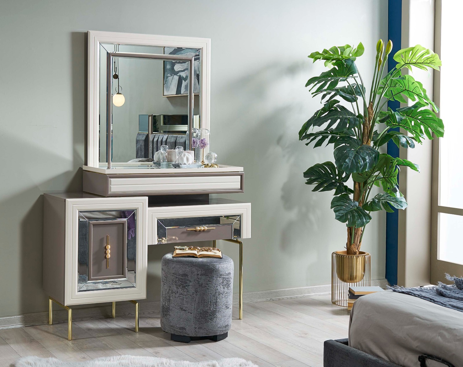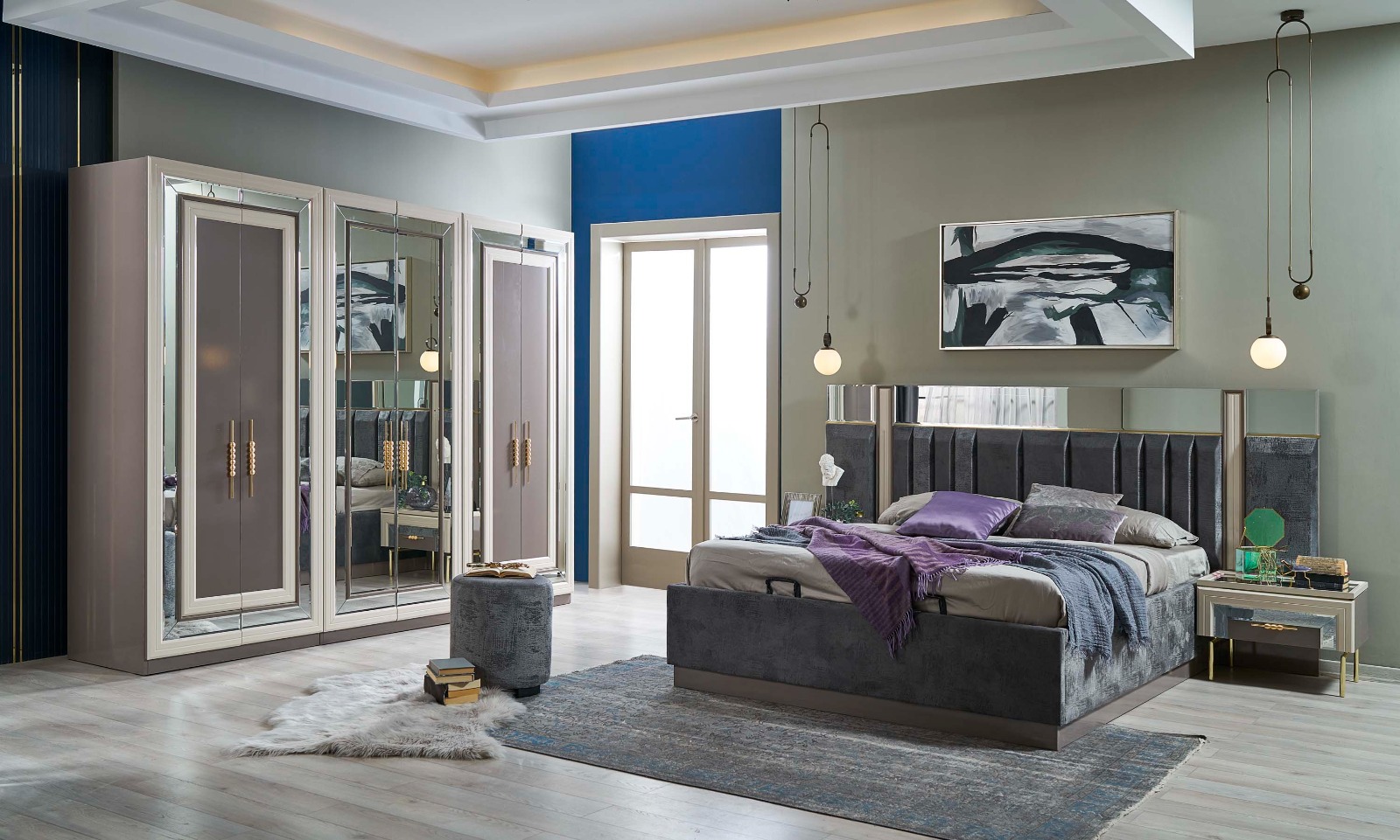 Setul contine : un dulap, un pat (160x200cm sau 180x200cm la alegere), o comoda + oglinda, 2 noptiere