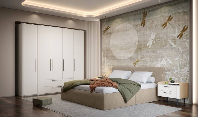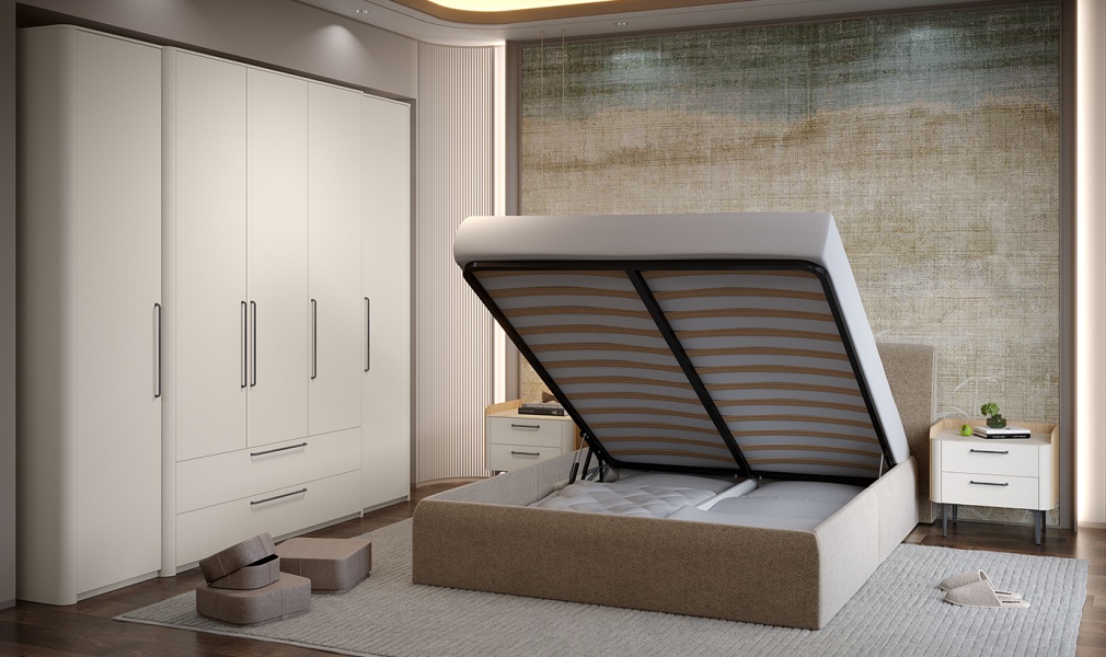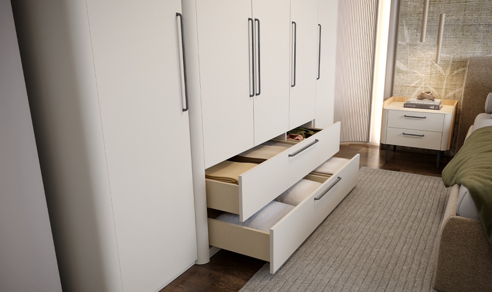 - Dulapul, noptierele si comoda au sistem de inchidere soft-close