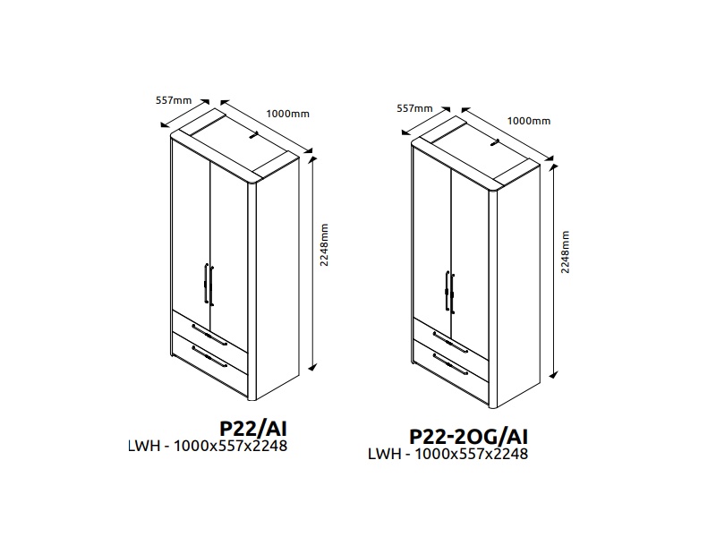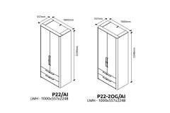 Dulap cu 2 usi cu balamale si 2 sertare AIR 100x225x56cm Pepper White, manere antracit