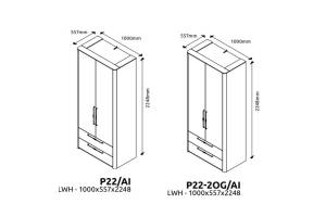 Dulap cu 2 usi cu balamale si 2 sertare AIR 100x225x56cm Pepper White/ oglinda, manere antracit