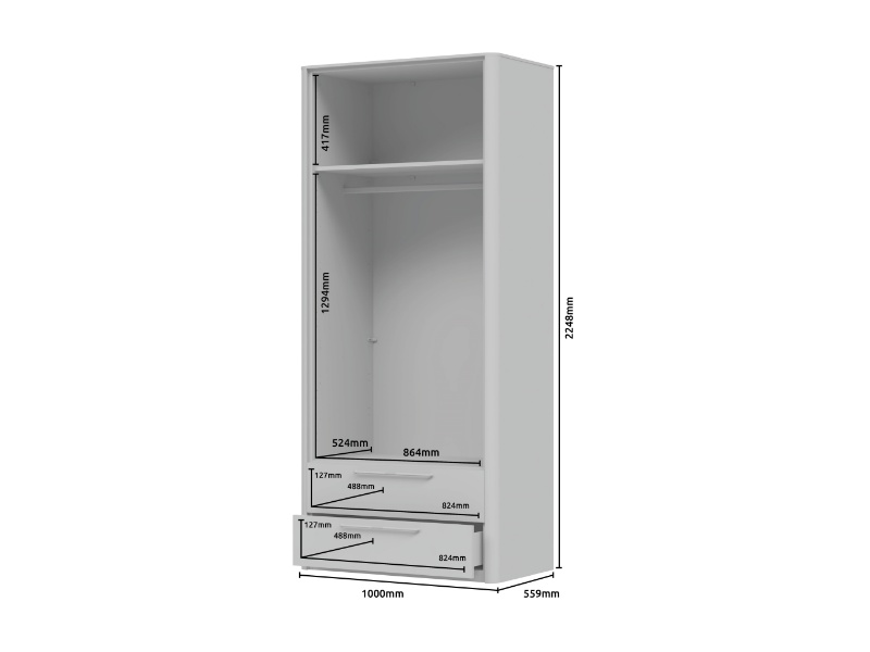 - Standard dulapul vine cu: 1 bara pentru umerare + 1 polita