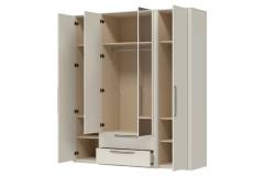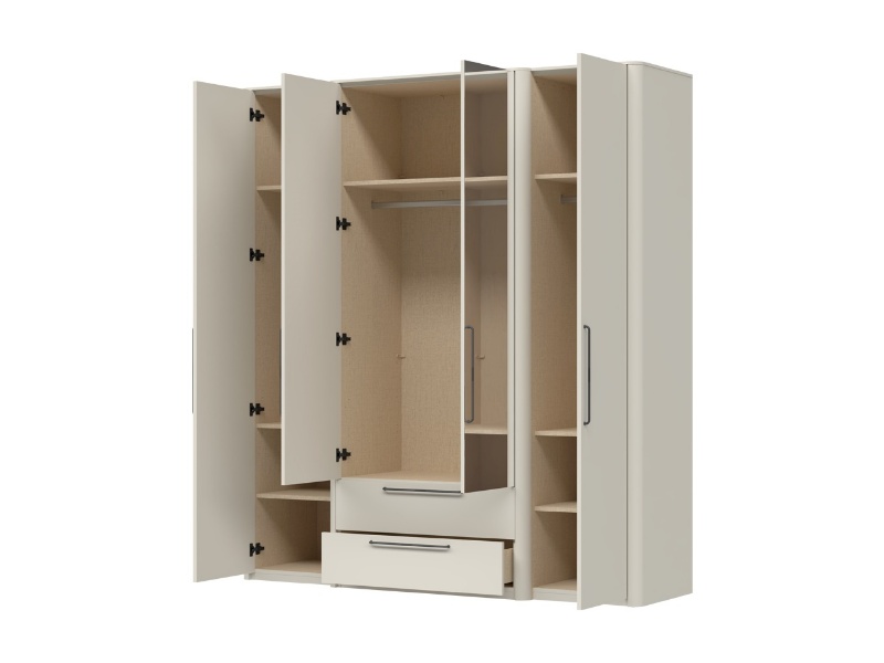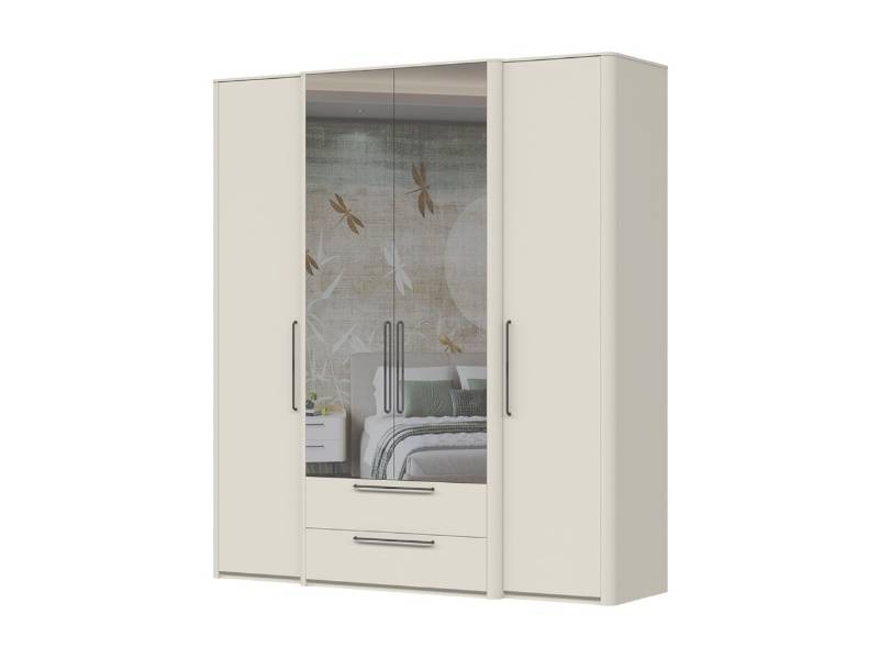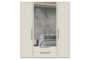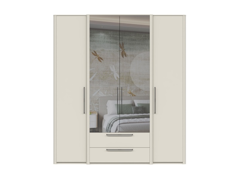 Dulap cu 4 usi cu balamale si 2 sertare AIR 187x225x61cm Pepper White/ oglinda, manere antracit