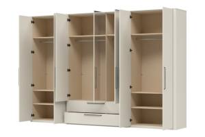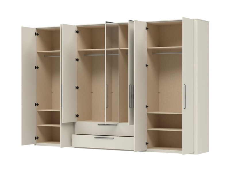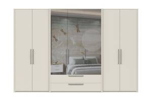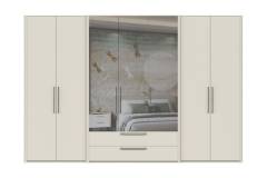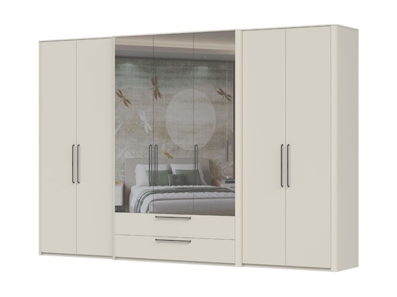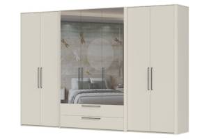 Dulap cu 7 usi cu balamale si 2 sertare AIR 335x225x61cm Pepper White/ oglinda, manere antracit