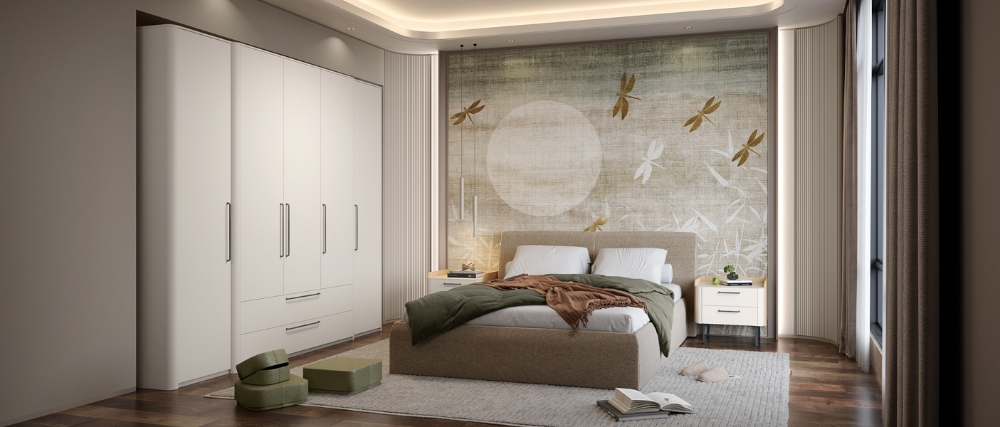Pretul afisat nu include dulapul, noptierele, montajul, alte piese de mobilier si accesoriile din imaginea de prezentare a produsului.