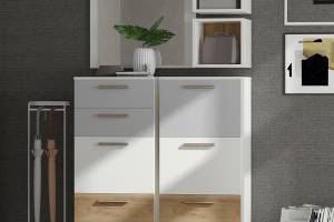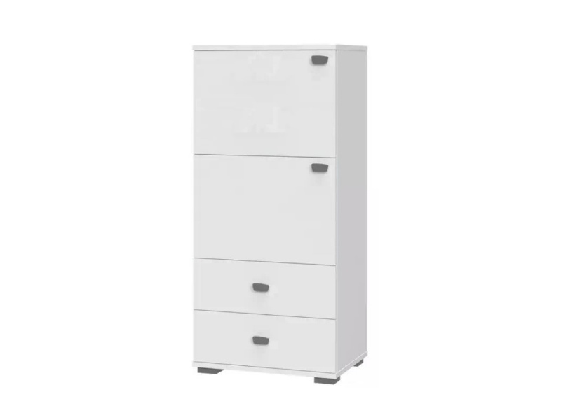 - comoda are 2 usi decor (grafit mat + Nuc Pacific) + 2 sertare decor alb mat