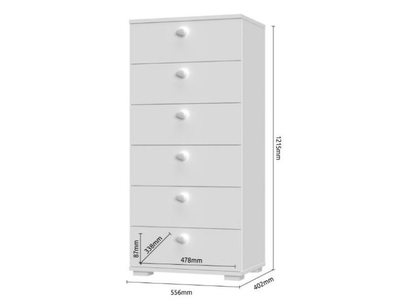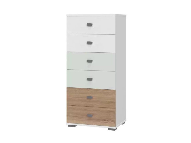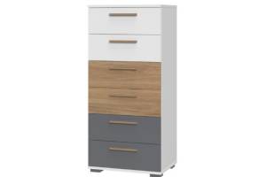 - comoda are 4 sertare decor ( 2 sertare alb mat + 2 sertare grafit mat + 2 sertare nuc Pacific)