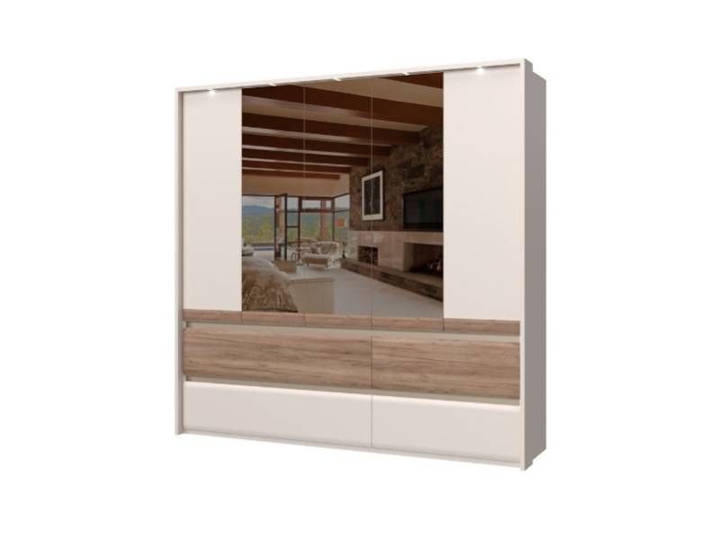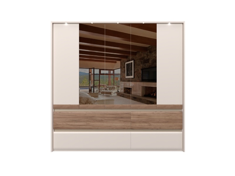 Dulap cu 5 usi si 4 sertare INVICTUS 232x226x60cm casmir/ stejar tabac - oglinda