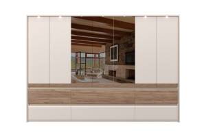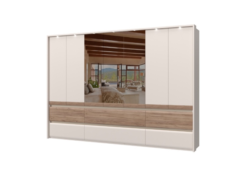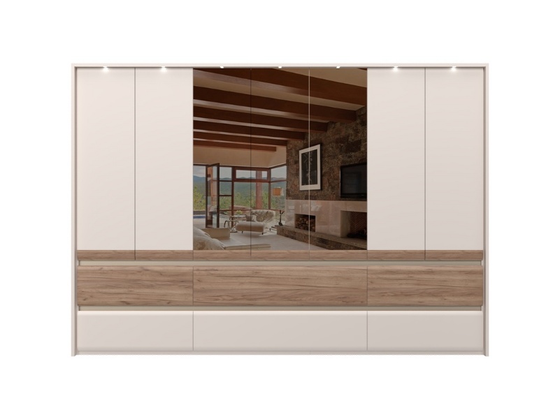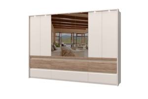 Dulap cu 7 usi si 6 sertare INVICTUS 322x226x60cm casmir/ stejar tabac - oglinda