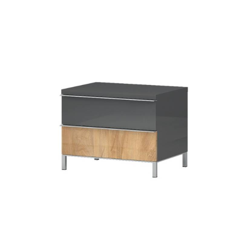 Noptiera cu 2 sertare ONYX 45x43x40cm antracit lucios/ nuc Pacific, picioare si manere crom