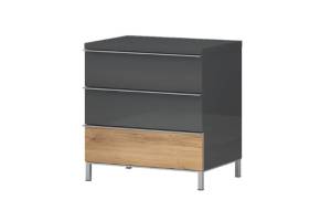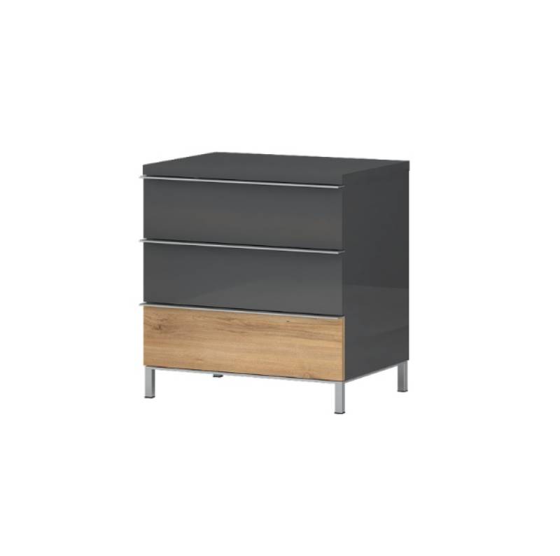 Noptiera cu 3 sertare ONYX 56x59x40cm antracit lucios/ nuc Pacific, picioare si manere crom