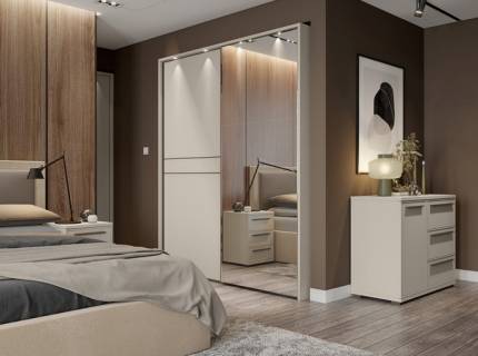 Dulap cu usi glisante OPERA 230x224x61cm casmir/ oglinda, maner maro