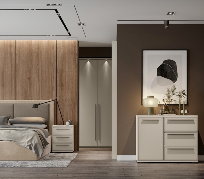 Comoda cu 1 usa si 3 sertare OPERA 107x85x45cm casmir, manere si picioare maro