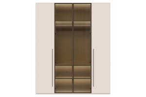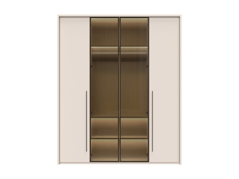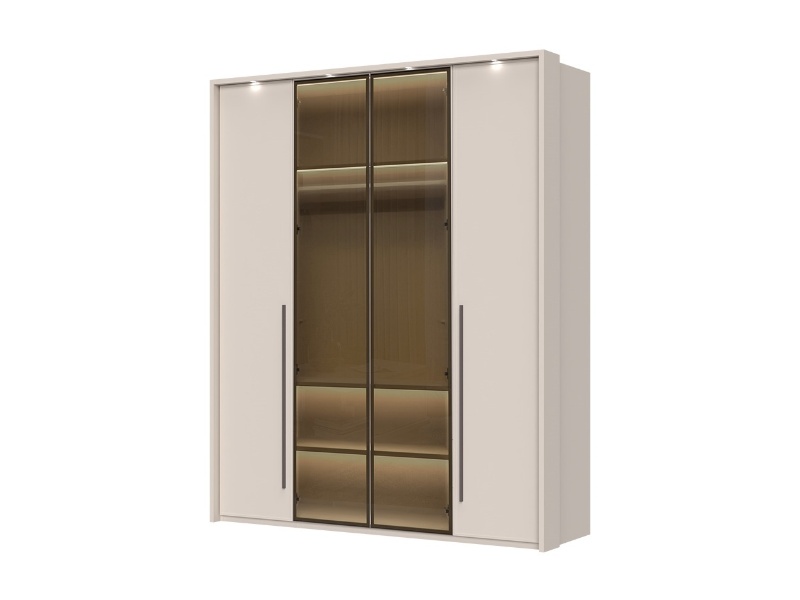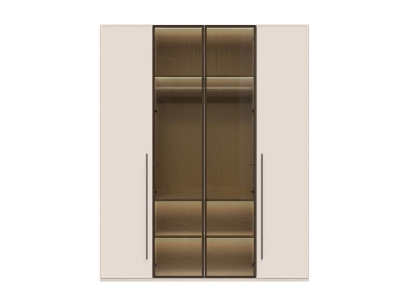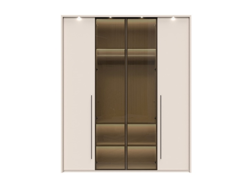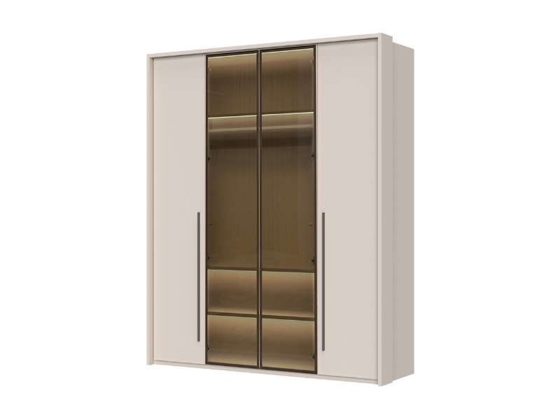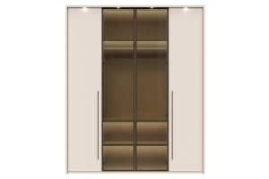 Dulap cu 4 usi cu balamale OPERA 182x224x56cm casmir/ sticla Parsol, manere maro