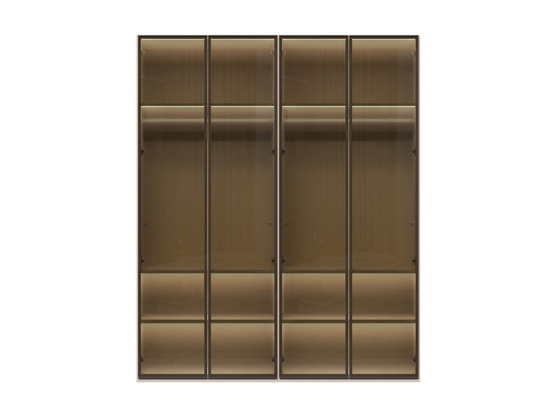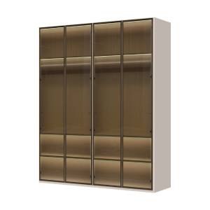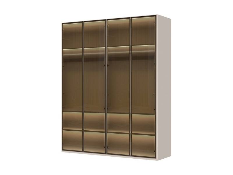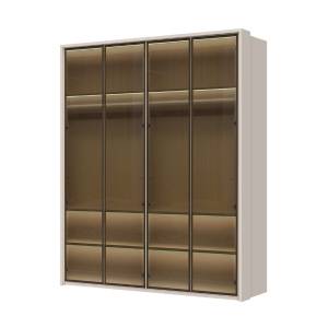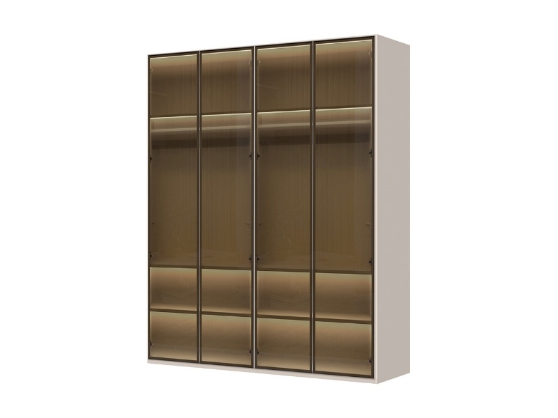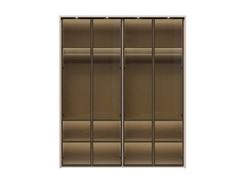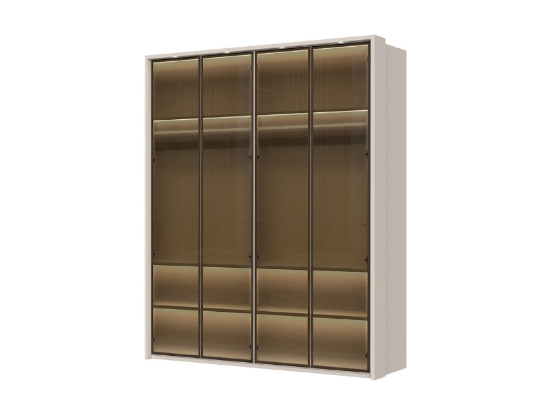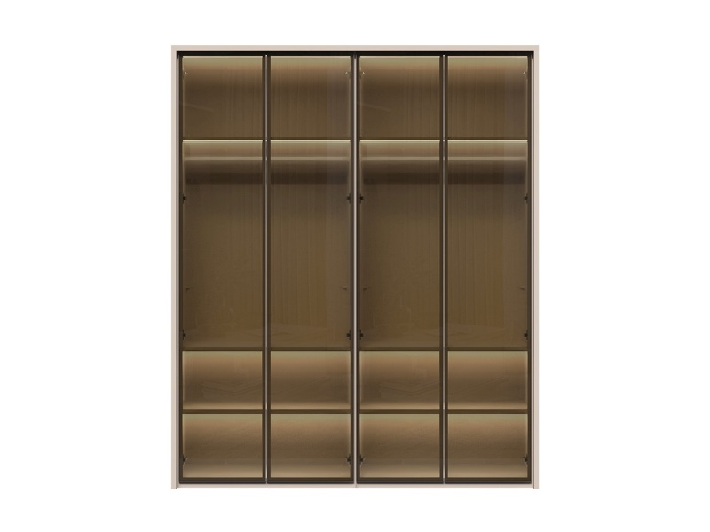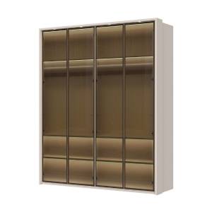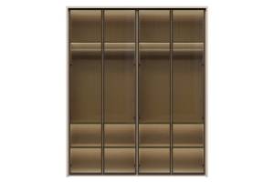 Dulap cu 4 usi cu balamale OPERA 182x224x56cm casmir/ sticla Parsol, manere maro