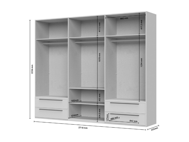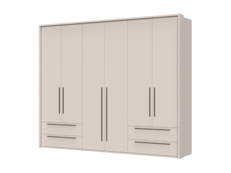 Dulap cu 6 usi si 4 sertare OPERA 272x224x56cm casmir, manere maro