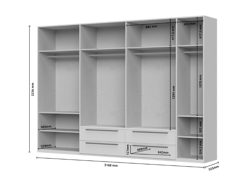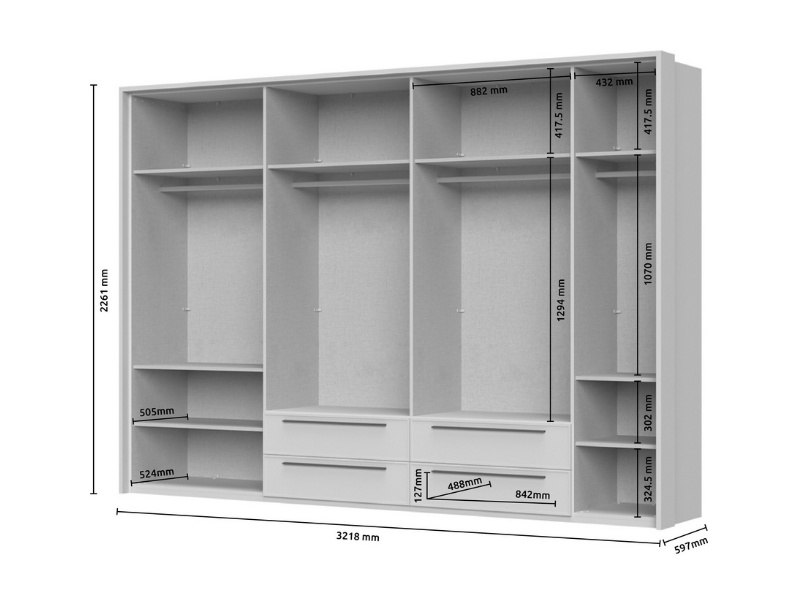Dulap cu 7 usi si 4 sertare OPERA 317x224x56cm casmir, manere maro