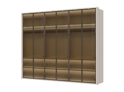 Dulap cu 6 usi cu balamale OPERA 272x224x56cm casmir/ sticla Parsol, manere maro