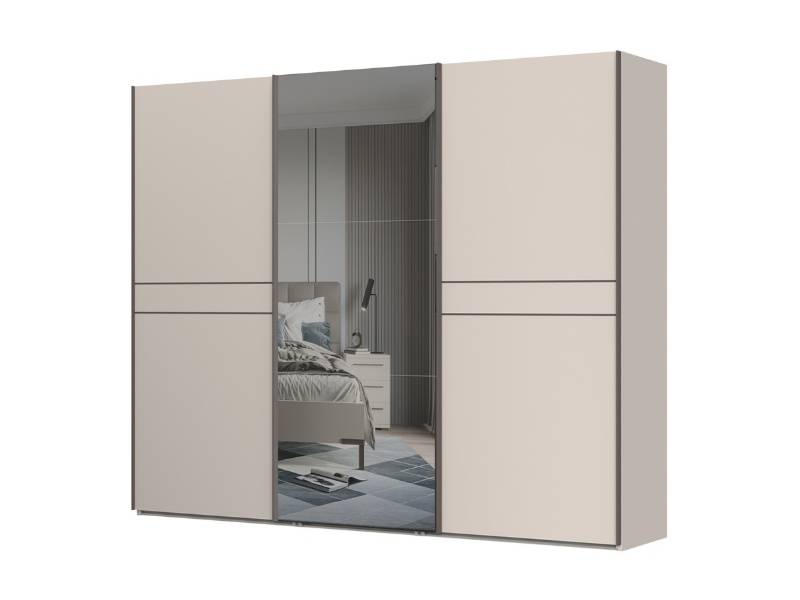Dulap cu usi glisante OPERA 272x224x61cm casmir/ oglinda, maner maro
