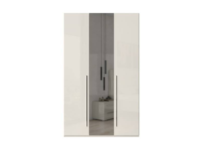 Dulap cu 3 usi cu balamale PIANO BEIGE 137x224x56cm bej lucios/ oglinda, manere crom
