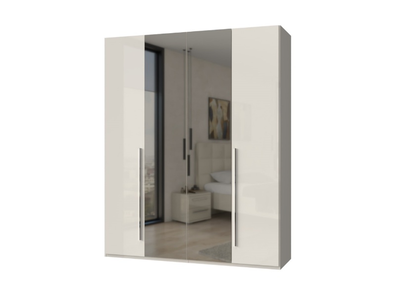 Dulap cu 4 usi cu balamale PIANO BEIGE 182x224x56cm bej lucios/ oglinda, manere crom