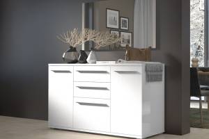 - trei usi si doua sertare, decor alb lucios
