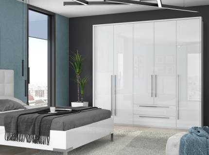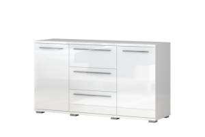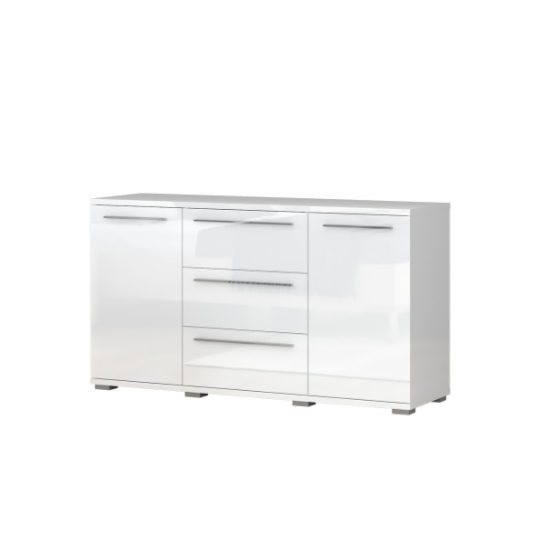 Comoda cu 2 usi si 3 sertare PIANO WHITE 153x85x45cm alb lucios, manere crom