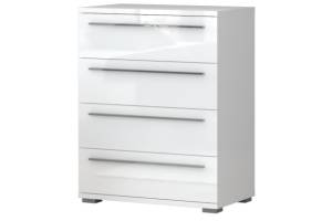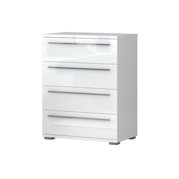 Comoda cu 4 sertare PIANO WHITE 76x97x45cm alb lucios, manere crom