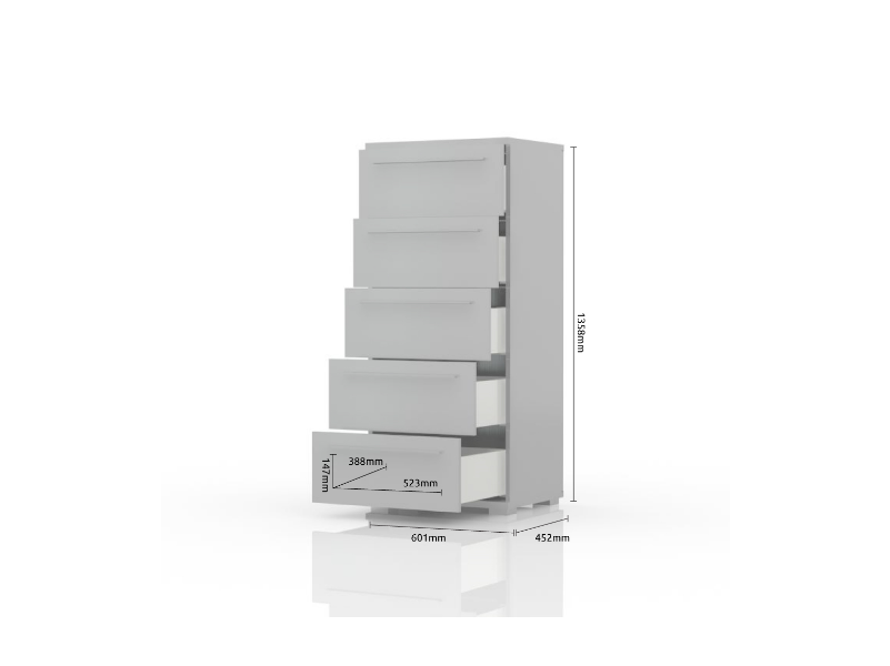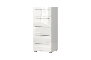 Comoda cu 5 sertare PIANO WHITE 60x135x45cm alb lucios, manere crom