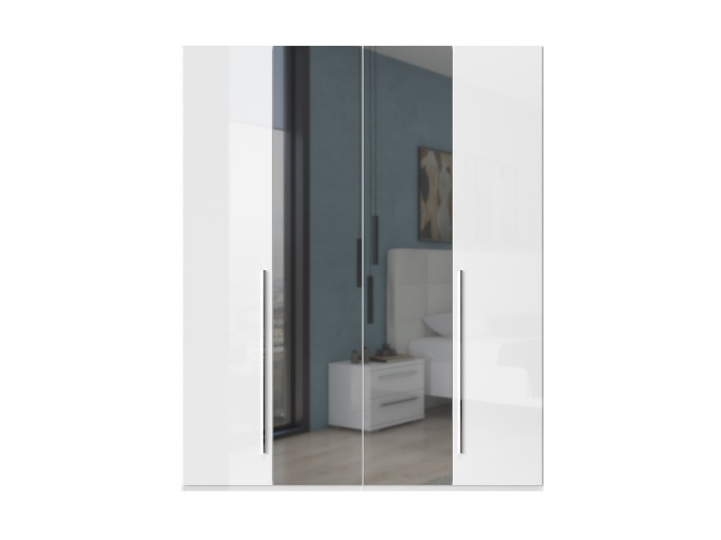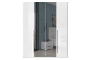 Dulap cu 4 usi cu balamale PIANO WHITE 182x224x56cm alb lucios/ oglinda, manere crom