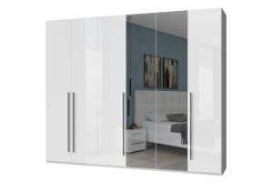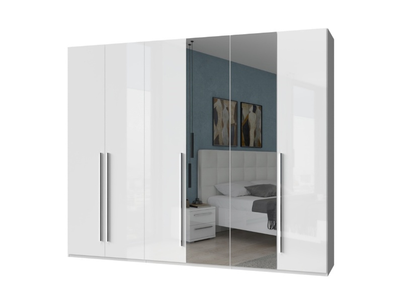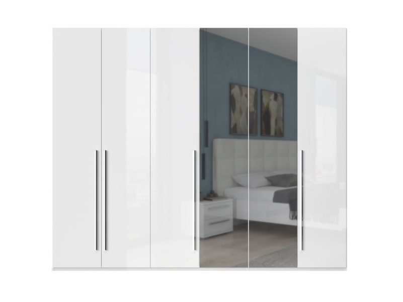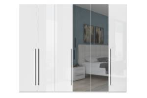 Dulap cu 6 usi cu balamale PIANO WHITE 272x224x56cm alb lucios, maner crom