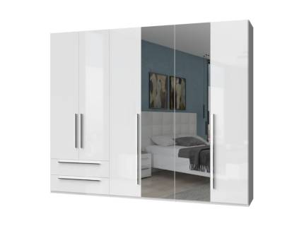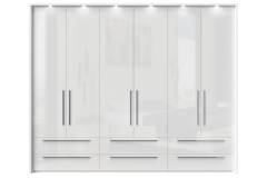 Dulap cu 6 usi si 6 sertare PIANO WHITE 272x224x56cm alb lucios, maner crom