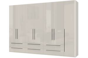 Dulap cu 7 usi si 6 sertare PIANO WHITE 317x224x56cm alb lucios, maner crom