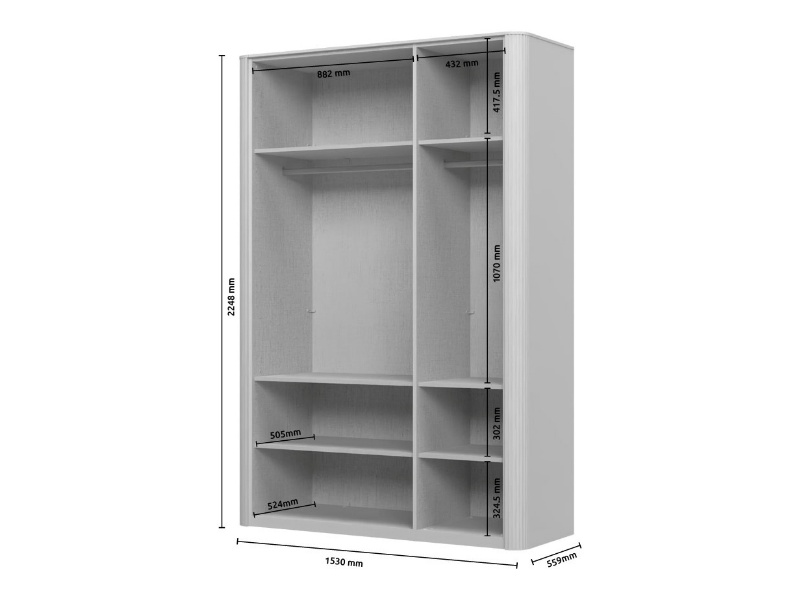 - Standard dulapul vine cu: 2 bare pentru umeras + 6 polite (3 mici + 3 mari)
