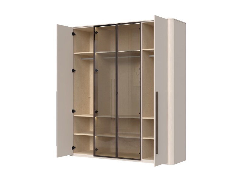 Dulap cu 4 usi cu balamale RONDO 198x225x56cm casmir/ sticla Parsol, manere Midnight Copper