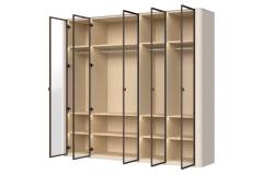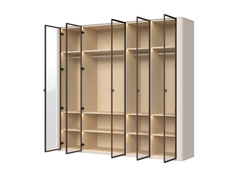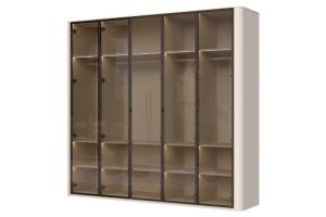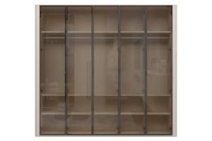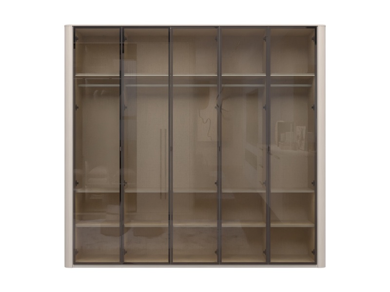 Dulap cu 5 usi cu balamale RONDO 243x225x56cm casmir/ sticla Parsol, manere Midnight Copper